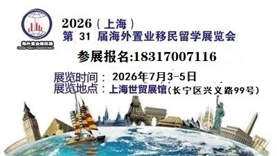 2026QSE上海第31届海外置业移民国际教育留学展览会 展会时间:2026年7月3-5日 展览地点:上海世贸展馆(长宁区兴义路99号)